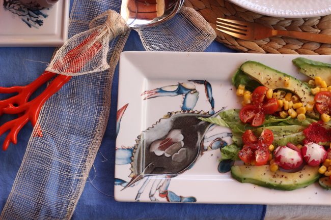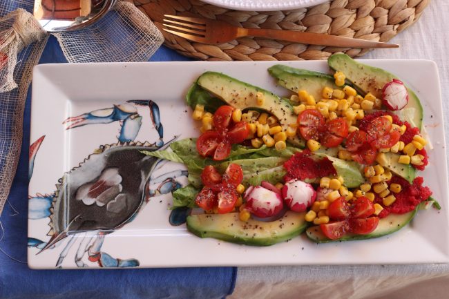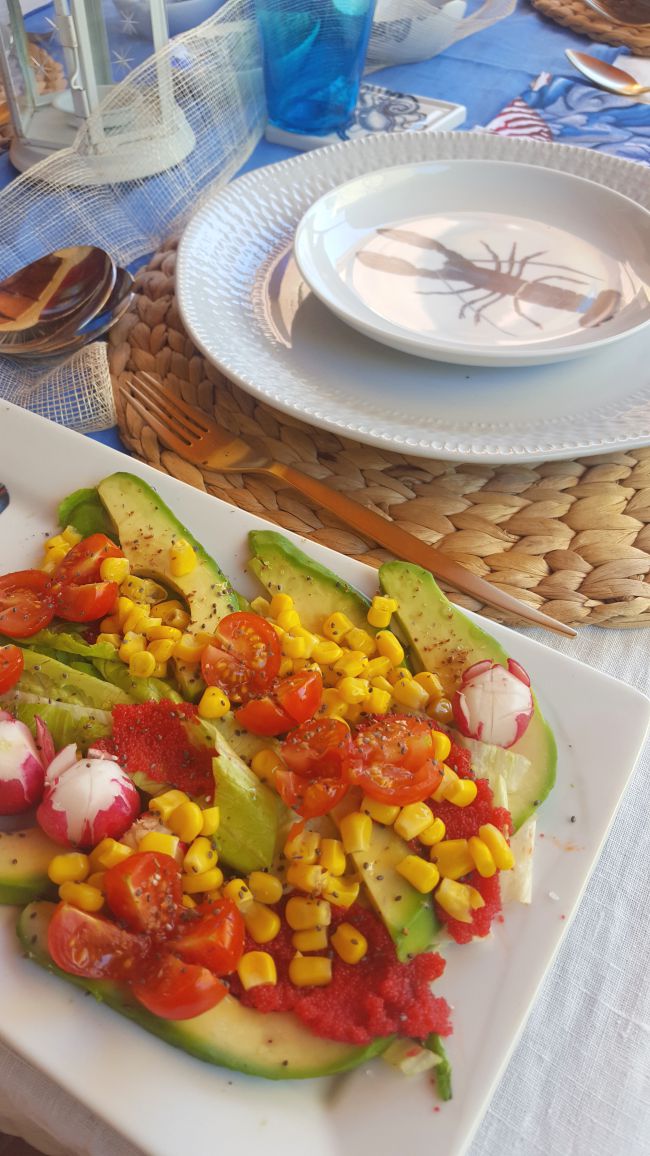No puede faltar como entrante una ensalada fresca como productos tan buenos y saludables como el aguacate, el maíz, el tomate y los rábanos.